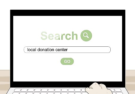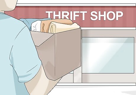 Find a local donation center to donate your clothes to. Go online to search for donation centers in your area that will accept your clothes to save on transportation costs and to support a local center. Additionally, many larger charities like Habitat for Humanity often have drop-off locations where you can donate clothes. Contact the organization to make sure they’ll accept your clothing items before you drop them off. Some charities only accept specific clothing items for donation.