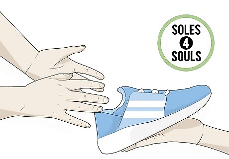 Give your old shoes to Soles4Souls to be recycled. Soles4Souls will accept used shoes to be recycled or repurposed and distributed to people in need all over the world. Visit soles4souls.org and use their Find a Location tool to find a donation center near you.Tip: If you live in the US, you can use their Zappos for Good program that will allow you to ship your shoe and clothing donation for free up to 50 pounds (23 kg)! Contact Soles4Souls to request a free box to ship your donation.