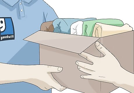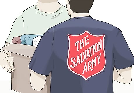 Call the Salvation Army to pick up your clothes. The Salvation Army is a charity organization that uses parts of its profits to support educational programs and initiatives to help the homeless. They also make donating easy by offering a pickup service that will come to your house to pick up your clothing donations. Call your local Salvation Army to arrange a pickup. Go to SalvationArmy.org to find a location near you.
