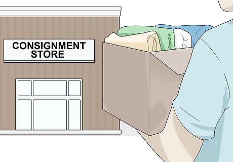 Bring your clothes to a local consignment shop to sell them. Go online to search for consignment stores in your area that you can bring your clothes to. Consignment stores accept good-quality clothing items to sell in their shop, and will pay you for your clothes if they think they are able to sell them.Tip: Some consignment stores only buy specific items. For example, a consignment store that sells second-hand dresses will not buy a pair of men’s work boots. Contact them before you bring your clothing items.