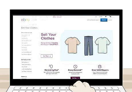 Use an online marketplace to sell your clothing items. If you want to control the selling process, you can sell your clothes using an online marketplace to advertise the clothing item and the price. Sell used clothing on eBay or use Facebook Marketplace to clear out your closet and make a little cash. Take lots of high-quality pictures to use in your online listing. Set a reasonable price, and mention whether you are open to negotiating the price. Clearly label the brand, color, and size of the clothing item.