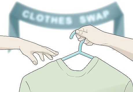 Host a clothing swap to exchange clothes. Invite friends who wear close to the same size (and maybe style) of clothing as you to bring their surplus clothing items and you can compare and exchange items. Clothing swaps are a great way to recycle clothes by giving them to people who like them and will use them. Make a Facebook event to invite people to a clothing swap. They can also post pictures of items they plan to bring to event.
