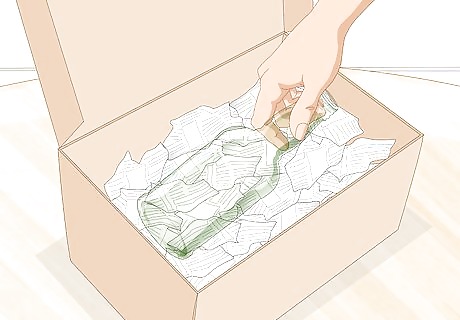Keep shipped goods from breaking with newspaper. Newspaper is soft and makes a great packing material. Instead of using bubble wrap or packing peanuts, fill your boxes with crumpled newspaper to keep your goods from breaking or shattering while they’re being shipped. Packing peanuts and bubble wrap are extremely difficult to recycle. This is a good way to avoid introducing them into the environment. Do not use newspaper to keep perishable goods safe. The ink on the paper may make its way into the organic material.