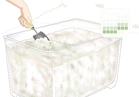Mix your pile and wait another 3-4 weeks for your compost to break down. The amount of time that it takes for your compost to decompose depends upon the materials, the temperature, and the air flow your compost is exposed to. After the first 2-4 weeks have passed, use a shovel or trowel to mix your pile up. Mix the pile once a week to continue introducing air, which will aid in the breakdown of the organic materials. Wait another 3-4 weeks for your pile to break down into a soil-like material. It may take longer than 6 weeks for your compost to break down if you have a really large pile.