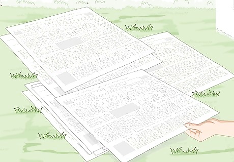 Layer your newspapers in the bottom half of a compost bin or pile. To effectively compost, you need an equal mixture of green and brown layers. Since newspaper takes longer to break down than standard organic waste and can blow away in the wind, lay it out flat in the bottom half of your bin to keep it weighed down. You can add any number of layers, but the more you add, the longer it will take to break down. It doesn’t matter what type of newspaper you use or how many layers you add. The bigger your compost pile is, the longer it will take to break down, though. Incorporate your newspaper in thinner layers if you want them to compost as quickly as possible. Include a mixed set of green and brown layers for maximum effectiveness. Add your compost by hand or with a shovel. You shouldn’t add any toxic materials to the pile to begin with, so it will be fine to touch the compost.