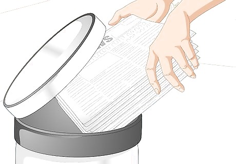 Place your newspaper in your standard recycling bin. Fold your newspaper flat so that it fits in your recycling bin and doesn’t take up a ton of space. Set it outside for your weekly pick-up alongside your cardboard and other paper. Keep your recyclables away from food contamination by holding on to your takeout containers and disposable plates. Food-waste and greasy residue belongs in the trash, not your recycling bin.