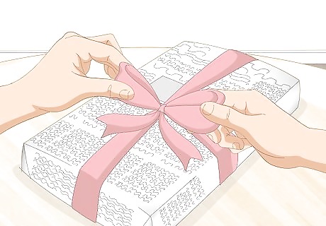 Use old newspaper as gift wrap to cut back on waste. Instead of spending money on fancy gift wrap, use stacks of old newspaper to wrap your gifts. Lay a sheet of newspaper flat and place your box or item in the center of the paper. Pull a corner up and smooth it down with the palm of your hand. Use a piece of tape to affix the corner to your item and repeat for the other corners. Use multiple sheets layered on top of one another to cover the item.Tip: This is a good way to cut back on paper waste since newspaper is much easier to recycle than laminated gift wrap. You’ll also be keeping more paper from being used by keeping the gift wrap on the shelf.