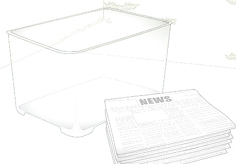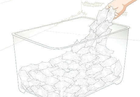 Create a compost bin or pile, using your newspaper as filler. Composting is the process of piling up organic materials and allowing them to decompose over time. This can be done in a bin, box, or free-standing pile. Choose to set up a composting bin or box if you want to keep your compost contained. If you have a large yard, a free-standing pile is perfectly fine.Tip: Greens include leaves, lawn trimmings, food waste, coffee grounds, and manure. Browns include dried leaves, straw, twigs, lint, and paper. You need a mix of “green” and “brown” materials to compost. Green materials refer to organics that are usually green, like plants, flowers, and food waste. Browns tend to be white or brown. Newspapers count as a brown for composting purposes, even if they are white or gray in color. Get a bin with a lid if you’re worried about smell. It isn’t essential for the composting process, though.