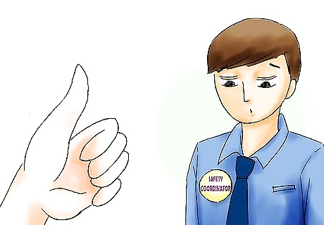 Put someone in charge of safety in your company. Discuss the current safety policies with this safety coordinator, and work on a plan to make sure that they are adhered to. Confirm that the person is aware of all the responsibilities associated with safety. Express your support to this person and arrange to meet on a regular basis to discuss concerns about and solutions to further accident prevention.