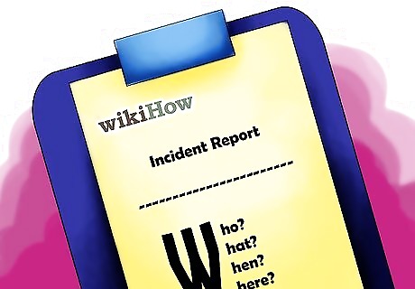 Create incident reports after each workplace accident. If an accident occurs in your workplace, write up an incident report. Investigate what happened, who was involved, how the accident might have been prevented, and recommendation for further procedures. At the very least, an incident report will foster awareness and possibly act as a deterrent for future accidents.