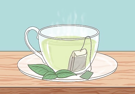 Make green or black tea for general systemic inflammation. Both of these common tea types have demonstrated anti-inflammatory properties that could help with inflammation in your joints, airways, and digestive system. Green tea is slightly more effective, but both are good choices. Always use tea bags or leaves instead of powder. Powdered tea is heavily processed and won’t have as many nutrients.