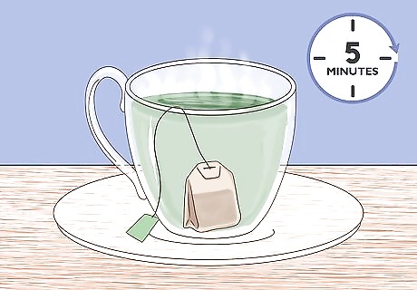 Steep a teabag in boiling water for at least 5 minutes. Place the teabag into a mug and pour boiling water over it. Let the bag steep for at least 5 minutes so the tea is strong enough. Some herbal teas, like chamomile, have to steep a little longer. Check the brewing instructions to confirm the time.