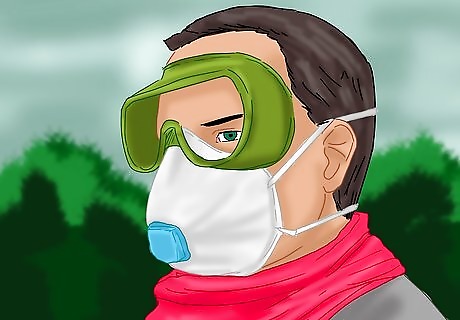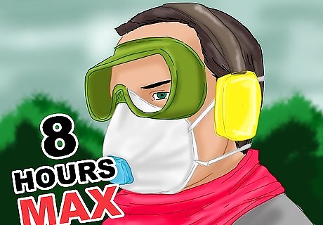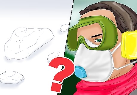 Wear an approved respirator. Silica dust can only harm you if you breathe it in. The use of respirators intended to filter out silica dust will substantially reduce the risk of negative health consequences. The use of such respirators is usually required by law and safety codes as well, when engaged in an occupation in which silica dust exposure is likely. If you are going to be exposed to airborne silica at concentrations of 50 micrograms per cubic meter, the National Institute for Occupational Safety and Health (NIOSH) recommends a half-face particulate respirator with a filter rating of N95 or better (the 95 indicates that the filter was able remove at least 95% of the most-penetrating particles during testing). For higher concentrations of silica particles, you will need a powered or supplied air respirator. Make sure you choose a respirator that is intended to block out silica dust, and that you wear it regularly and properly. The mask needs to create a seal over your mouth and nose.