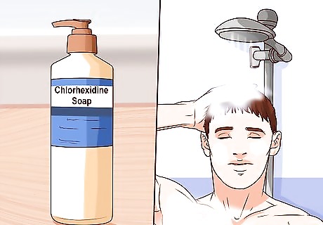 Shower with chlorhexidine soap. For at least three days before your hospital stay, shower once or twice a day with chlorhexidine soap. This soap is an antibacterial soap that can help remove bacteria from your skin before you enter the hospital. Often, infections are introduced to your body by bacteria on your own skin, so removing some of it can help prevent infection. You can usually find this soap over-the-counter at most pharmacies or from online stores. If you can't find it, ask your doctor about it.