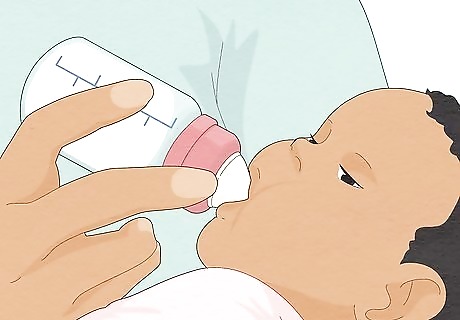 Learn the baby's hunger signals. Feed your infant as soon as they seem hungry. A calm baby will eat more slowly than a hungry, worked up baby. A baby may also swallow excess air during a crying fit. Signs of hunger might include crying, mouth movements such as sucking motions, or restlessness.