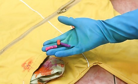 Find and remove anything that's left of the melted crayon, the paper wrapper or any small chunks of crayon. If a big chunk of crayon is stuck on, take a warm paper towel and dab it on the big chunk and pull it off.