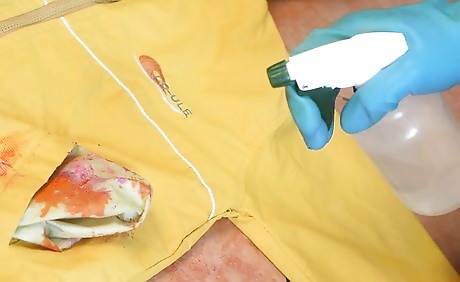 Spray the stained spots with stain remover and let sit for 20 minutes.