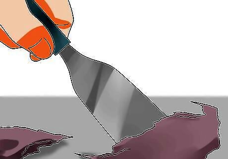 Spread a 1/4" (6 mm) layer of the poultice over the stain using a drywall finishing knife. Make sure to spread the poultice out so that there is a 2" (50 mm) margin around the stain.