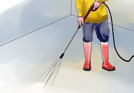 Rinse with clean water using a garden hose. A pressure washer can help you get rid of the oil stain.