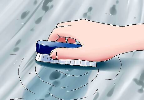 Scrub the area with warm water and laundry detergent using a stiff nylon bristled brush. There are various types of concrete cleaners on the market, too—just be sure to follow the manufacturer's instructions when using these.