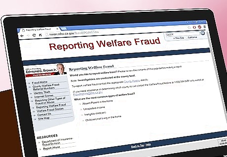 Ask yourself why you are preparing to report welfare fraud. Before you start the reporting process, you should think about why you are considering reporting possible welfare fraud. Welfare fraud is often a criminal offense, meaning if someone is found to be engaged in fraud, they could be sent to prison. You should be careful to only report suspected welfare fraud if you truly believe the person you are reporting has committed fraud. Most often, these reports are made by family members or former family members. Making false or baseless reports for the purpose of retribution or emotional distress can lead to you being criminally investigated for false reporting.