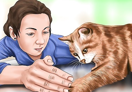 Make your pet's bad behavior undesirable. If your pet realizes that certain behaviors have undesirable consequences for him, then he will likely stop doing that behavior. Examples of undesirable consequences include inattention and deterrent devices. Species-specific punishment, such as hissing at a cat, can make bad behavior less desirable without physically punishing or yelling at your pet. Not showing affection towards your pet as he is performing the bad behavior is another way to make the behavior undesirable.