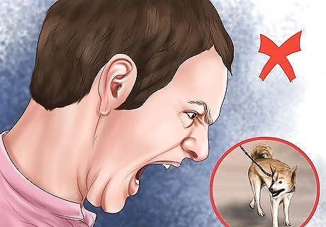 Do not rub your dog or cat’s face in his urine and feces. Your dog or cat will not learn anything from you rubbing his face in his urine and feces. This is not an effective method of reprimand. Your pet may end up fearing you and might even hide from you when he has to go to the bathroom. Your dog or cat may also end up thinking that you’re the one with bad behavior.