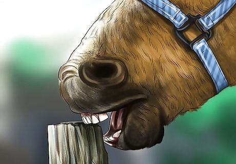 Do not reprimand stereotypes. Stereotypies are abnormal behaviors that can develop when an animal is an abnormal environment. Stereotypies are often repetitive and typically do not perform any function. An example of a stereotype is cribbing—when a horse bites down an inanimate and stationary object and sucks in air. It can be difficult to stop your pet from engaging in stereotypes. It is best to seek the expertise of your veterinarian or veterinary behaviorist to correct the stereotypical behavior.