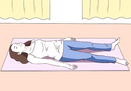 Find a comfortable position. This can either be sitting up or lying down. The only rule is that you must be comfortable. How you achieve that is totally up to you. As much as possible, refrain from moving around or squirming while meditating. You may want to purchase a travel pillow or a blanket to make you more comfortable, if possible.