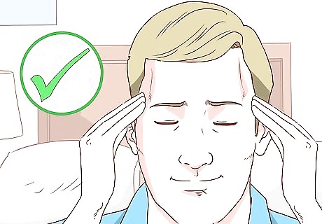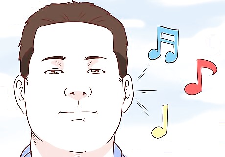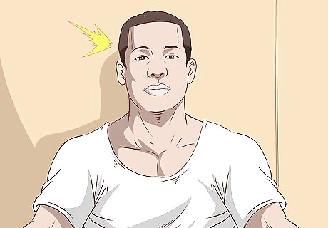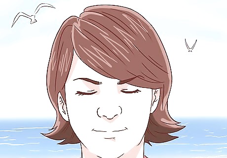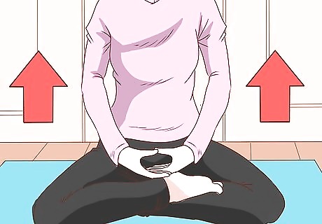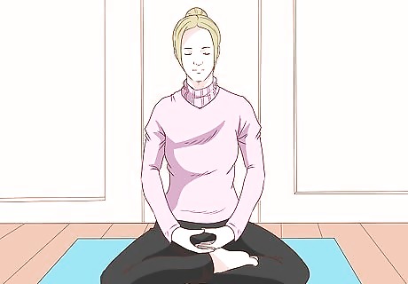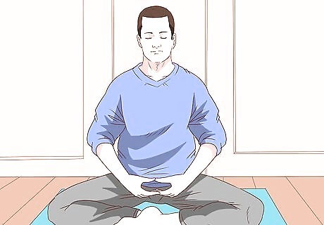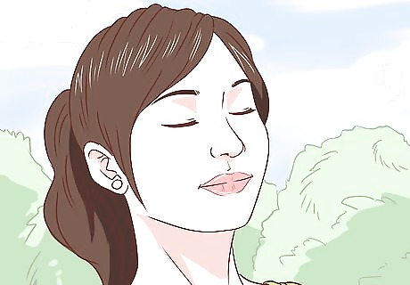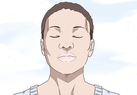 Block out external stimulation. We’ve all stared into space until our world blurs and we’re not really “seeing” anything anymore. This is the state you want to achieve, so as much as you can, try not to register the objects, noises or smells around you. This may be difficult at first, but the more you practice, the decision to ignore your surroundings becomes more natural and, eventually, second nature. Try to focus on a single object. Choose something small and unmoving like a crack in the wall or a flower in a vase. You can even choose something with no definable characteristics, like a plain white wall or floor. Once you've stared at it long enough, your eyes should begin to glaze over and just like that, you've shut out external influences. Another method is to try focusing on your breathing. This practice includes "belly breathing," meaning you draw your breath into your abdomen, not your chest. Rest your hands on your stomach and try to lift them by filling your belly with a deep breath. Then feel them lower as you exhale. This type of breathing (diaphragmatic) can stimulate the parasympathetic nervous system, which can relax you.