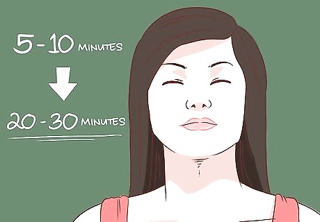 Start with small intervals. Some monks practice zazen for extended periods of time, but for yourself, try starting with five- or 10-minute sessions with a goal of building up to 20 or 30 minutes. Set a timer or alarm to alert you when time is up. Don’t feel bad if you have trouble at first. Your mind might wander, you might start thinking of other things, or you might even fall asleep. All of these are normal. Have patience and keep practicing. Eventually you’ll get it.