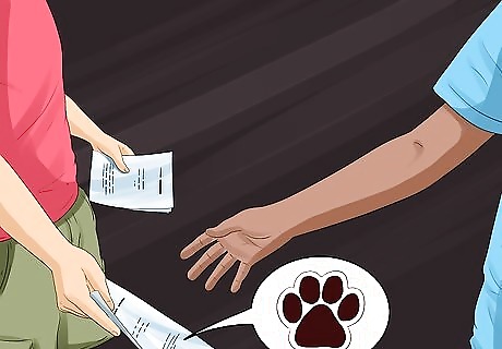 Be suspicious of any people claiming to be the owner. It is a sad truth that many people take advantage of kind hearted people who try to find the true owners of lost pets. These people may take the animal from you and then try to sell it, may harm the animal, or may even harm you. Thus, it is wise to be very cautious with people who come forward. If someone calls claiming to be the owner, don’t answer any questions about the dog. Instead, make them tell you about the dog. Ask the caller the questions. For example, you can say, “What color is the dog?” “What gender is the dog?” “Approximately how big is the dog?” “Was the dog wearing a collar, and if so, what color was it?” “Does the dog have any unusual markings?” “Is the dog microchipped or tattooed?” If you believe it is the owner, ask them to meet you at a specific vet office, and ask them to bring photos and any other information they have that proves they are the rightful owner. Doing it this way will protect both you and the dog. If you aren’t going to meet them at a vet’s office, then ask a friend to come with you to take the dog, and let a different person know where you are going and when you expect to be back.