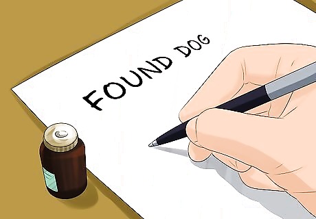 Post huge signs. Buy a few pieces of neon colored poster board and write “FOUND DOG” in huge letters on the board. Include your contact information and a bit of information about where you found the dog. Post one poster board in the exact spot where you found the dog, and post a few others at major street intersections. Make sure that the writing is large enough so that drivers can easily read it.