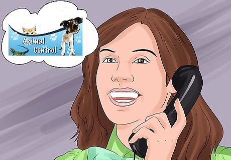 Contact animal control. If you don’t feel comfortable catching the dog on your own, if you can’t tell whether the dog is injured or potentially aggressive, or if you can see that the dog is behaving aggressively, it is best to contact animal control. Don’t try to approach a stray dog unless you are absolutely sure that they are not going to react defensively. If you aren’t sure of how to contact animal control, you can find information about local animal control and other local shelters on this website: http://theshelterpetproject.org. You can also try calling your area’s non-emergency police number. This is usually a local number that will connect you to the police without having to use the emergency number unnecessarily. If you can’t catch the dog on your own, don’t just give up and leave the animal to figure it out on their own. Animal control can help you with the situation.