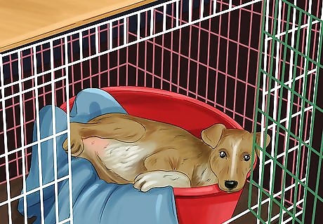 Keep the dog in a secure place. If you can’t or don’t want to take the animal to a shelter, and it is legal to do so in your state/country, then make sure you have a safe place for the animal to stay. Don’t just bring the animal home and lock them away in a room alone. They will probably be very frightened, so if they are not aggressive, do your best to make them feel that they are safe. You should still contact all the shelters in the area to provide a description of the pet in case the owner calls. Swing by a veterinarian’s office on the way home and ask them to check for a microchip. If the animal is microchipped, then you can return them to the owner right away. You can make them feel a little less frightened by talking in a soothing voice and petting them gently. Offer the animal water and a bit of food, preferably pet food. If you have one, you can keep the animal secured in a crate. If it is a large dog, and you have a secure yard, this may be a good place to keep them. However, don’t expect to leave them in a crate or in the backyard alone for days. This is not fair to the animal. If you have other pets, it’s best to keep your pets and the stray separated. You can do this by keeping them in separate rooms or crates. This is because you don’t know how the stray might behave around other animals, and you also don’t know their medical history. Some diseases are very contagious among animals and you don’t want to spread anything around. If you have found an animal with lots of fleas and/or ticks, it is best to take the animal to the vet or the shelter for treatment, especially if you don’t have experience with bathing animals.