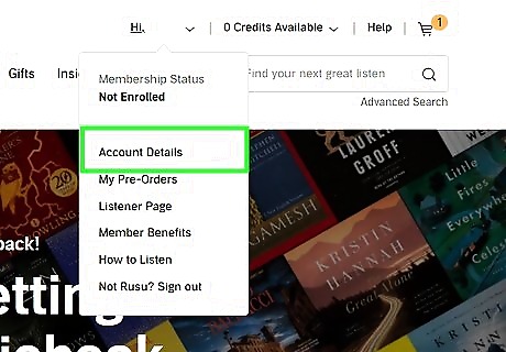 Go to https://audible.com in a web browser on your computer. Log in if you aren't already.