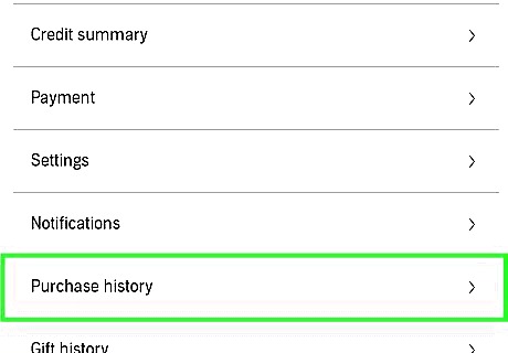 Tap Purchase History. You'll find this near the bottom of the menu. A list of all the purchases you've made will appear.
