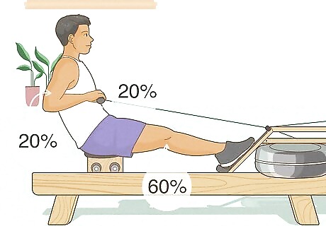 Perfect the power distribution. You are not engaging all parts of your body equally. When rowing, 60 percent of the power will come from your legs, 20 percent in your core, and then 20 percent in your arms. If you use more arm strength than leg strength, you will be able to pull, but you won't be able to do so for long. Your upper body will get tired quickly and you'll begin relying on your momentum to pull rather than your strength.