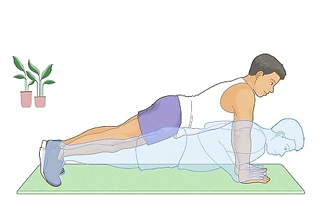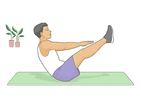 Strengthen your core. There are many exercises you can do to strengthen your core and abs. These exercises will help target not just your core, but your upper body as well: Plank: Lie face down on the ground. Place your elbows on the ground underneath your shoulders with your forearms extended straight in front of you. Then, left yourself up on your toes and your forearms, keeping your body straight. Hold this position for 30 seconds to two minutes, increasing the amount of time you hold as you get stronger. Side plank: Begin in the same position as the plank and lift yourself up onto your arms and toes. Then, slowly turn your body to the side, so that your weight is resting on one foot and one arm (either your left foot and arm or your right). Make sure your body is in a straight line and you aren't leaning over. Hold this position for 30 seconds to two minutes and then switch to the other side. V-sit hold: Sit on the ground with your legs straight in front of you and your upper body straight. Then, extend your arms out in front of you and slowly lift your legs off the ground. As you lift your legs off the ground, keep them straight, and slowly lean your upper body back, making sure to keep your back straight as you do so. Hold this position for 30 to 90 seconds.