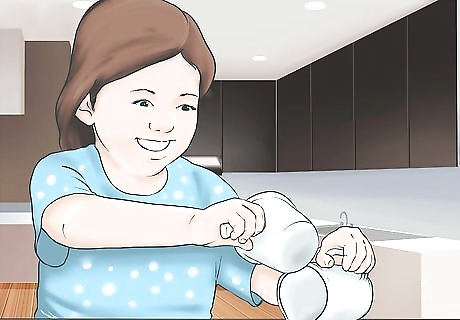 Allow them to measure ingredients. You may want to let your toddler measure ingredients that go into the recipes. This may be easier for your child and less of a risk. Teach your child to carefully measure out each of the ingredients and use the right measuring spoon or measuring cup. For example, your child can measure out half a cup of flour, put almonds into a ¼ cup measuring cup, or place two cups of already chopped spinach into a measuring cup.