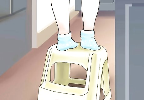Get your toddler a step stool. Your toddler is probably too short to reach the counter. To help them be able to reach the counter and help you while you cook, get a sturdy step stool for them to stand on. Make sure it is safe and that your child won’t be able to fall. Watch your child closely while they are on a step stool.
