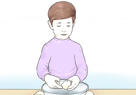 Consider letting the toddler crack eggs. One fun thing your toddler may be able to do is crack eggs. First, teach your child the proper way to crack eggs. Then, monitor as they crack the eggs for your next recipe. Double check to make sure no egg shells get into the dish. You may want to place a towel under the bowl or take other precautions to help keep messes at a minimum.