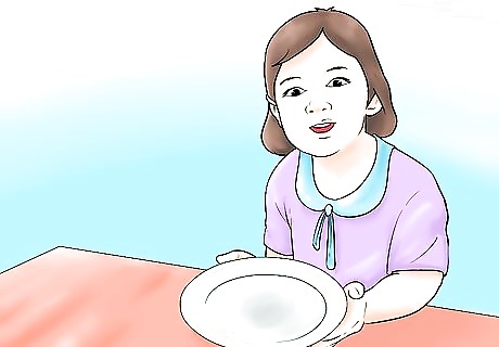 Get the toddler to set the table. If your child is too small to work with the food, get them involved by letting them set the table. The child can carry one or two plates at a time to avoid dropping, or you can set all the dishes on the table and allow them to put them out into the correct places. If your toddler is going to be carrying dishes, you may consider using plastic just in case they drop them.