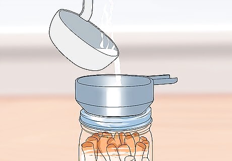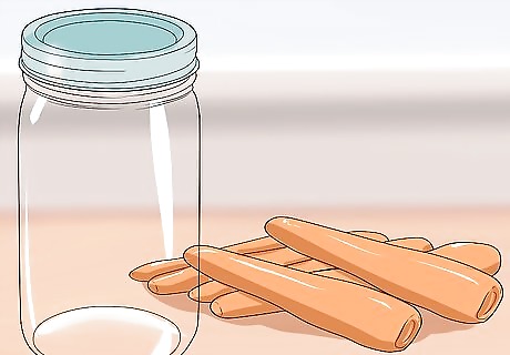 Assemble your materials. In addition to a canning device, canning at home requires a glass jar (a Mason jar, typically) and, of course, the food that you wish to can. If you grow your own produce, you could save even more money on your canning materials. You can often assemble canning materials – including a canning machine – for free on digital marketplaces like Craigslist. Try to get a set of canning jars for free or at a discount rate (but be sure to sterilize them by boiling them in water before use). If you have a community garden in your area, you might be able to lease a small plot for yourself to grow the veggies you want to can.