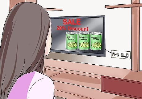 Look for sales. If you see canned foods you’re interested in on sale, buy them. Taking advantage of sales is a great way to save on canned food. Some stores have special sections where discounted goods are available. Pay attention to sales advertised on television and in your local paper to identify sales where you could save money on canned food.