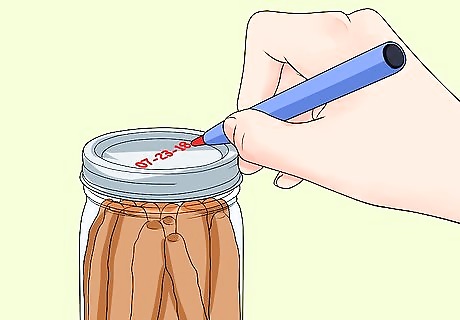Determine expiration dates. Once you’ve canned your own foods, you’ll need to assign each can an expiration date so that it can be incorporated into your pantry system. Generally, home-canned food is best eaten within one year.