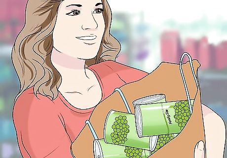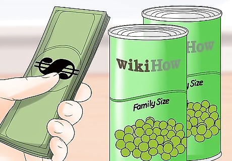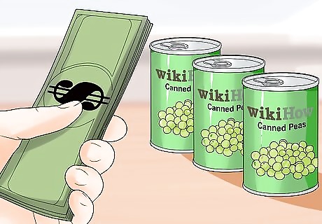 Buy in bulk. Certain stores like Sam’s Club enable you to save money by selling goods – including canned food – in bulk. You might have to buy a whole box of, for instance, canned peas, but the cost per can will be lower than it would be if you shopped at a regular grocery. You can often get bulk deals on a smaller scale at regular grocery stores. For instance, if you buy three cans of peas, you might pay one dollar per can, for a total of three dollars. But if you buy just one can of peas, you might pay $1.50 for a single can. Check the prices of canned goods as you shop, with an eye toward canned food that declines in price as you buy more.