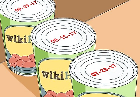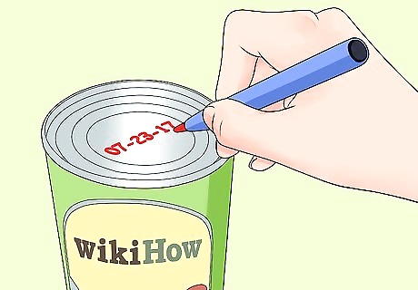 Mark your canned goods. If your canned goods expire, you’ll have to discard them. Throwing away food is like throwing money in the bin. Take action to prevent waste by labeling your canned food with expiration dates. Write the expiration date on the front of your canned foods with a marker. That way, when you open your pantry, you’ll be able to quickly see which canned goods are closest to expiring.