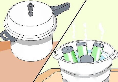 Choose your method. There are two canning techniques. One uses a pressure canner, a device that subjects canned food to high pressures to create high temperatures. The other method is to use a boiling-water canner, a device in which canned food is submerged in boiling water. When canning meat, seafood, poultry, and vegetables, pressure canning is the only canning method recognized as safe by the USDA.