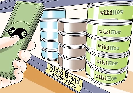 Buy only store brands. Store brands – as opposed to name brands – are always cheaper. But when it comes to quality, there is rarely any difference. Check the lower shelves to locate store-brand canned food. Store brand canned food is often obtained from the same producer that name brands use. Both the store brand and the name brand just slap their own labels on the products and charge different prices.